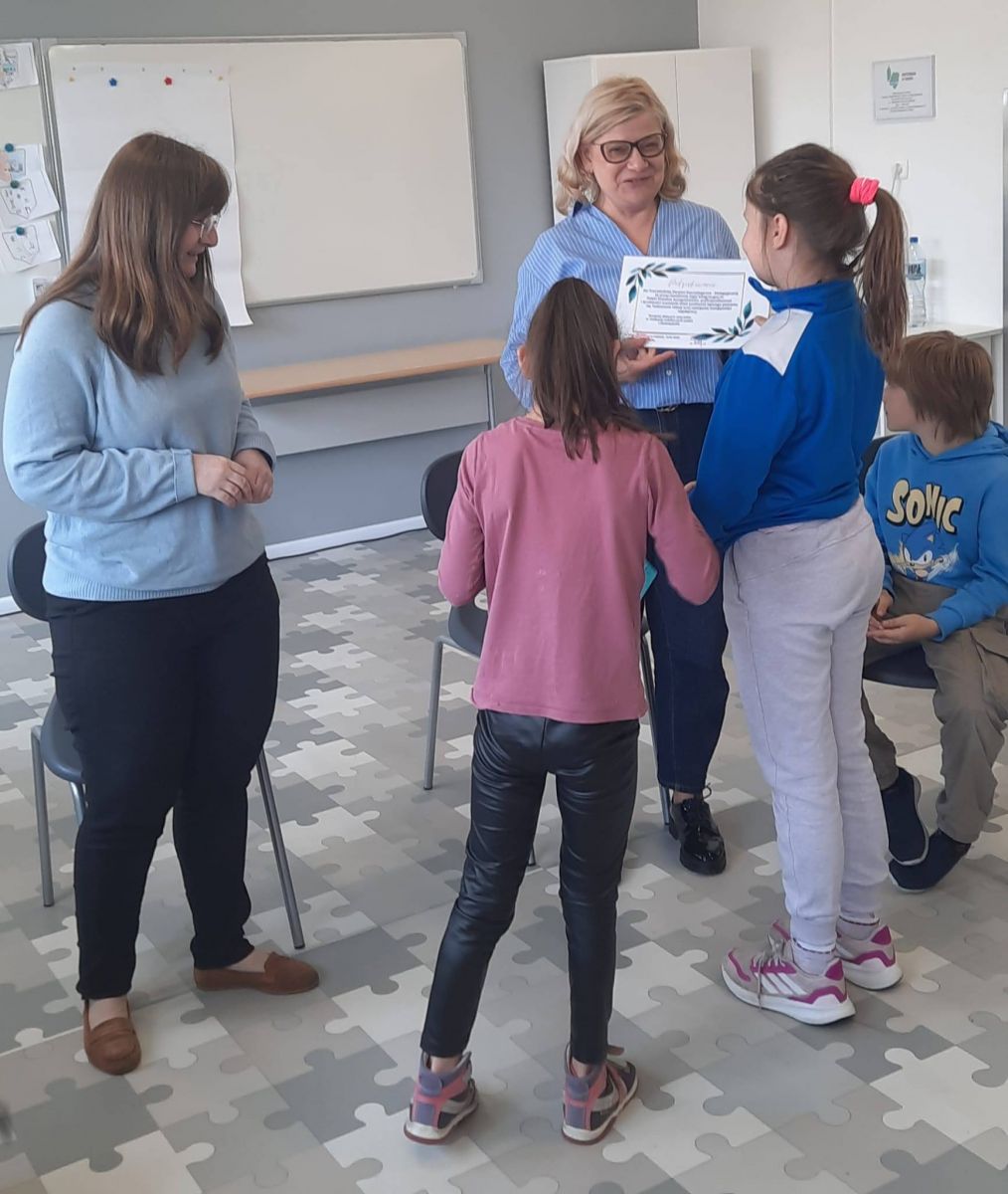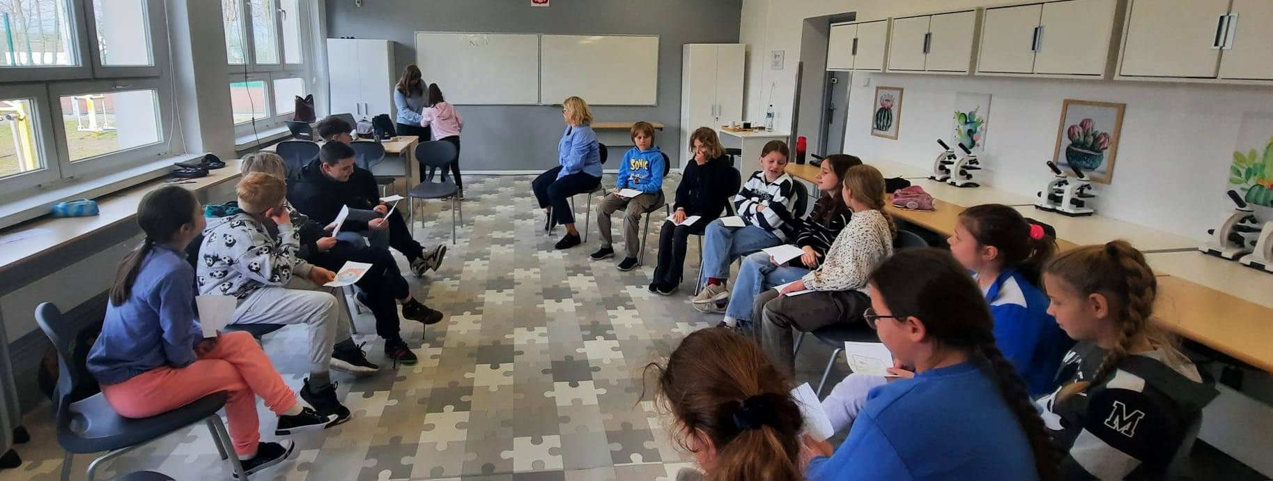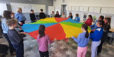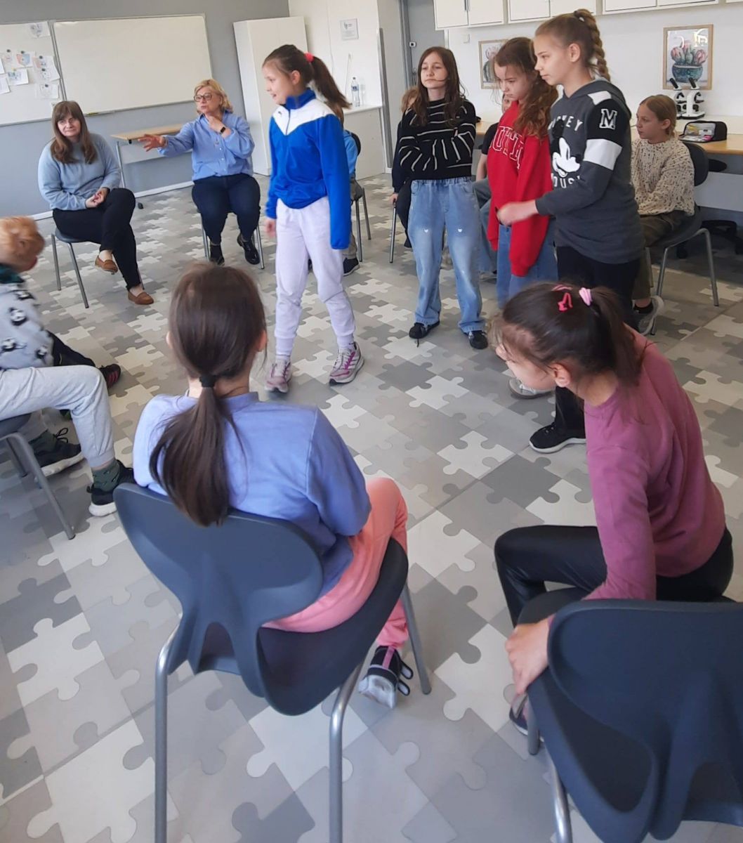 Wczoraj w klasie 4 odbyły się warsztaty integracyjne prowadzone przez Panie z Poradni Psychologiczno - Pedagogicznej w Opolu. Dzięki ich zaangażowaniu uczniowie mieli okazję lepiej się poznać i budować pozytywne relacje rówieśnicze. Dzieci projektowały swoje indywidualne herby, które następnie prezentowały na forum klasy – było to świetne ćwiczenie kreatywności i odwagi! Podczas zajęć wykorzystywano różnorodne formy aktywności sprzyjające integracji. Szczególnym zainteresowaniem cieszyły się zabawy z chustą animacyjną, które wywołały mnóstwo radości i zaangażowania. Zajęcia przebiegły w atmosferze życzliwości i otwartości, co sprzyjało wzmacnianiu poczucia bezpieczeństwa w grupie oraz budowaniu wzajemnego zaufania.