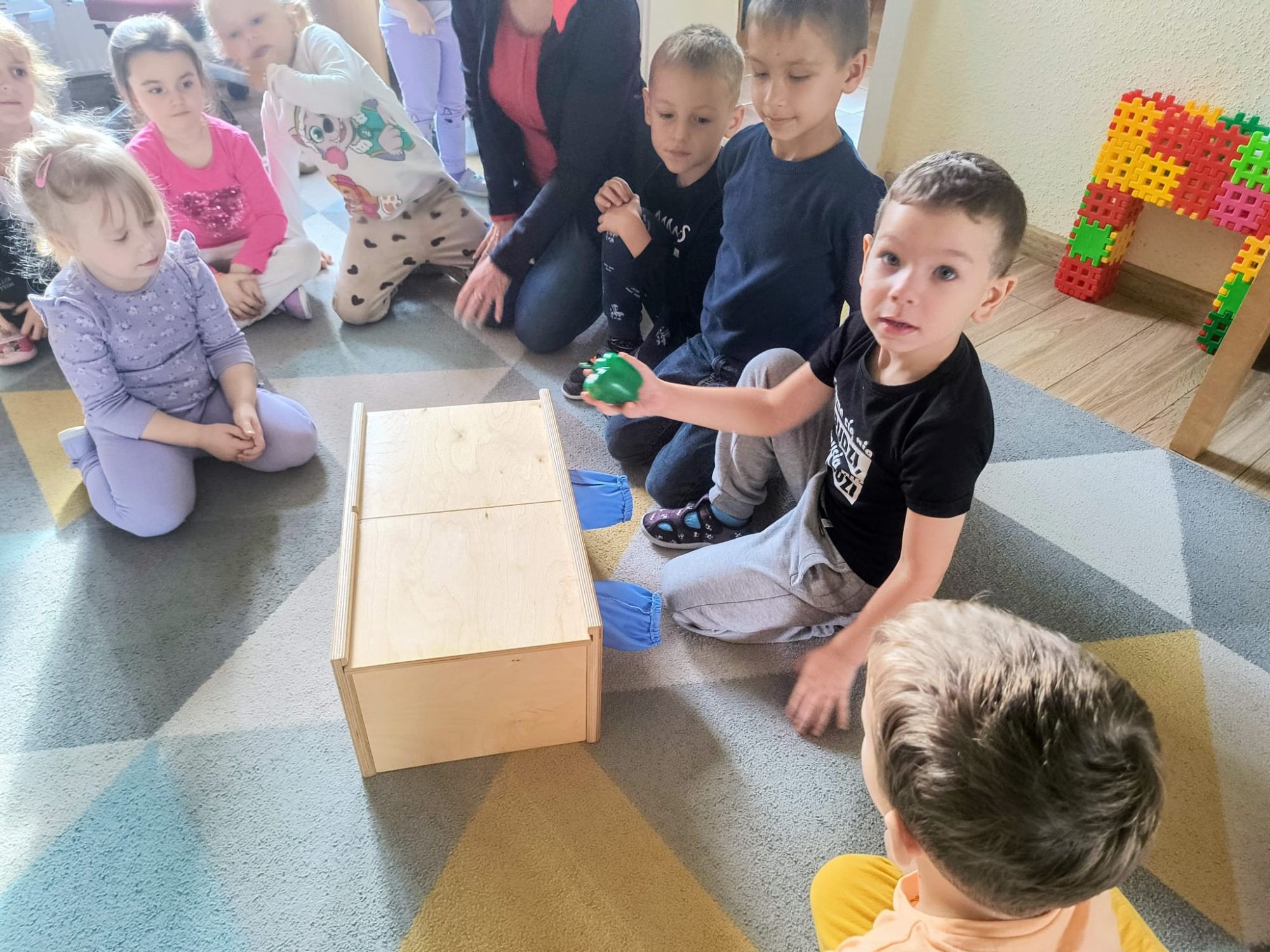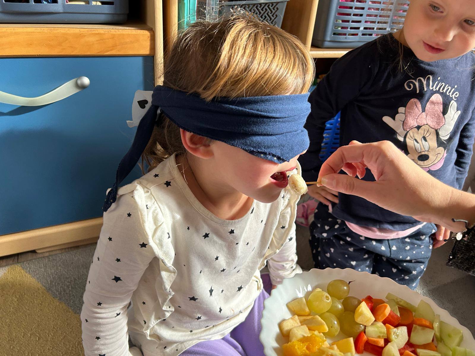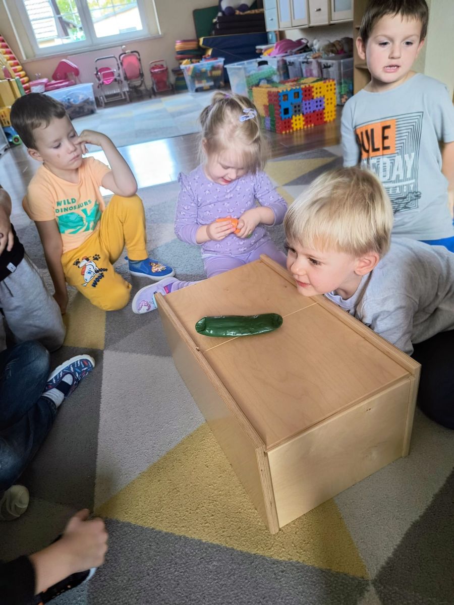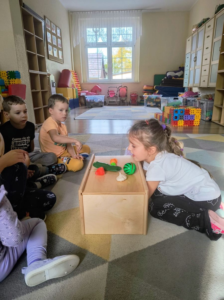 Zrobiło się kolorowo, pachnąco i bardzo smakowicie! Z okazji Światowego Dnia Owoców i Warzyw dzieci wzięły udział w wyjątkowej, zmysłowej zabawie. W czarodziejskiej skrzyni ukryły się różne warzywa i owoce. Przedszkolaki, używając tylko zmysłu dotyku, próbowały odgadnąć, co znajduje się w środku – nie było to wcale takie łatwe! Potem, z zasłoniętymi oczami, poznawały smaki owoców i warzyw – słodkie, kwaśne i pyszne! Dzieci wykonały również piękne prace plastyczne inspirowane ulubionymi owocami i warzywami. Podczas zabawy rozwijały zmysły, ciekawość poznawczą oraz świadomość, jak ważne jest spożywanie owoców i warzyw dla zdrowia i dobrego samopoczucia.