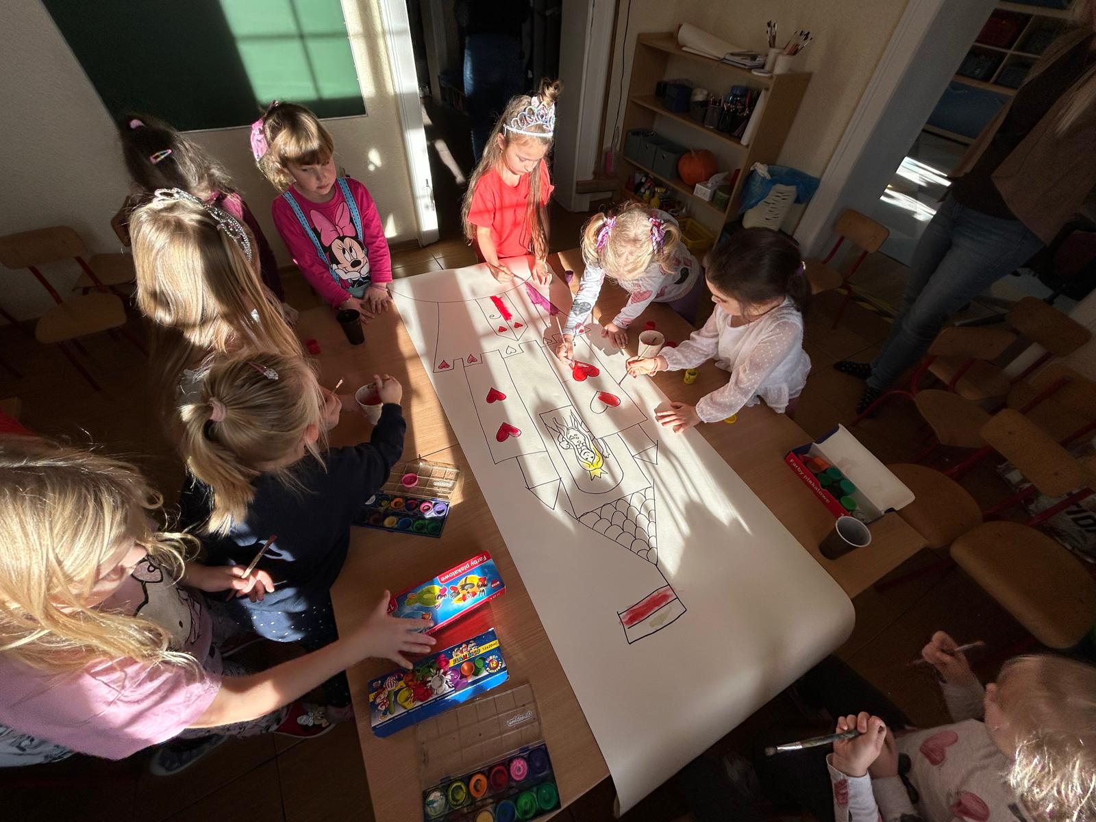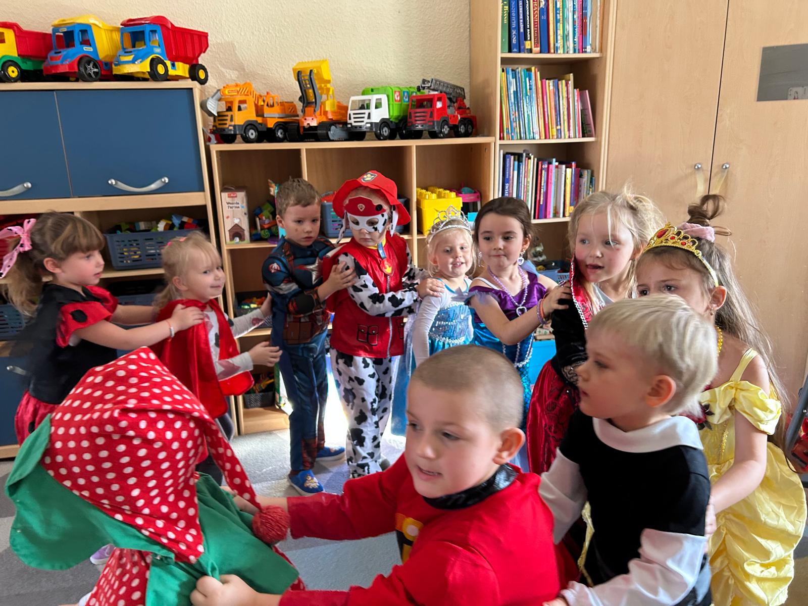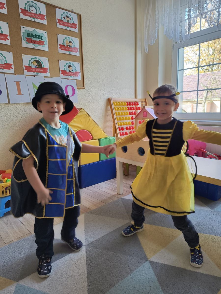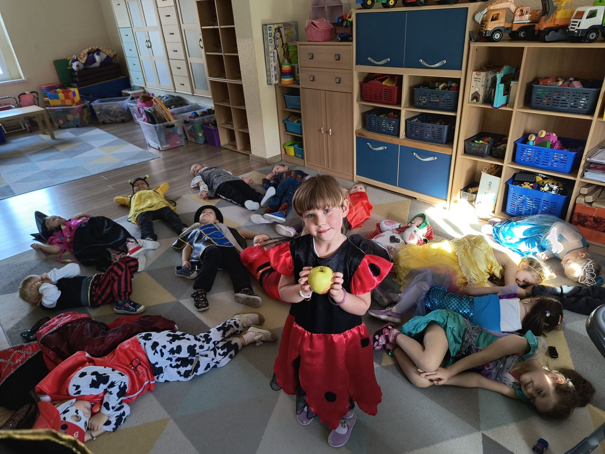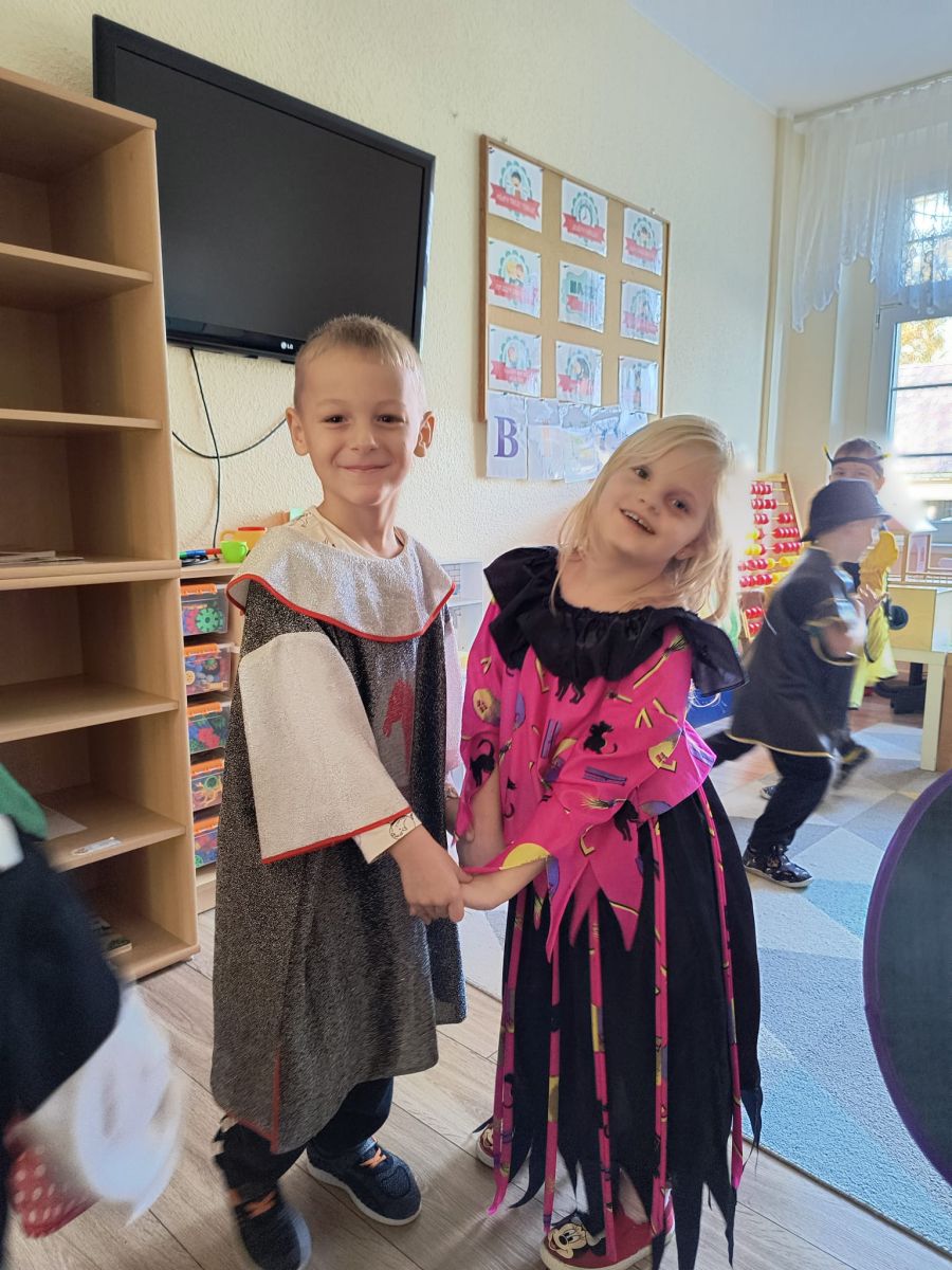 5 listopada świętowaliśmy Dzień Postaci z Bajek – dzień, który przeniósł nas wszystkich do magicznego, kolorowego świata ulubionych bohaterów! Nasze przedszkolaki wcieliły się w postacie z najpiękniejszych bajek – w sali zaroiło się od księżniczek, rycerzy, superbohaterów i bajkowych zwierzątek. Podczas wspólnej zabawy dzieci wzięły udział w grze „Zatrute jabłko”, która dostarczyła wszystkim mnóstwo radości i śmiechu. Nie zabrakło również bajkowych prac plastycznych – mali artyści tworzyli kolorowe zamki i pałace, w których mogliby zamieszkać ich ulubieni bohaterowie. To był dzień pełen magii, fantazji i uśmiechu – prawdziwa podróż do krainy baśni!