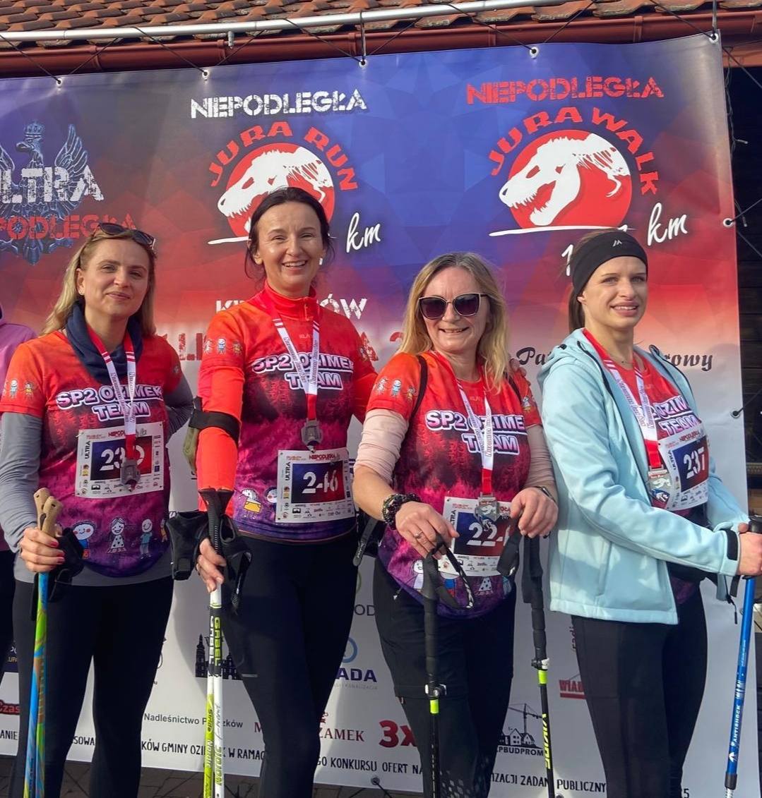 W dniu 09.11.2025 ponad 300 biegaczy spotkało się w JuraParku w Krasiejowie, by uczcić Święto Niepodległości w sportowym stylu. Nasza szkolna drużyna SP2 OZIMEK TEAM też wzięła udział w tym niezwykłym wydarzeniu. Wystartowałyśmy w kategorii Nordic Walking: 10,7 km – dystans, start o godz. 11.11, wszystko symbolicznie, aby uczcić 107 rocznicę odzyskania niepodległości. Były pamiątkowe medale dla wszystkich i statuetki dla zwycięzców. Po raz pierwszy stanęłyśmy na podium, nasze koleżanki zdobyły II i III miejsce w kategorii Nordic Walking - mieszkaniec Gminy Ozimek.