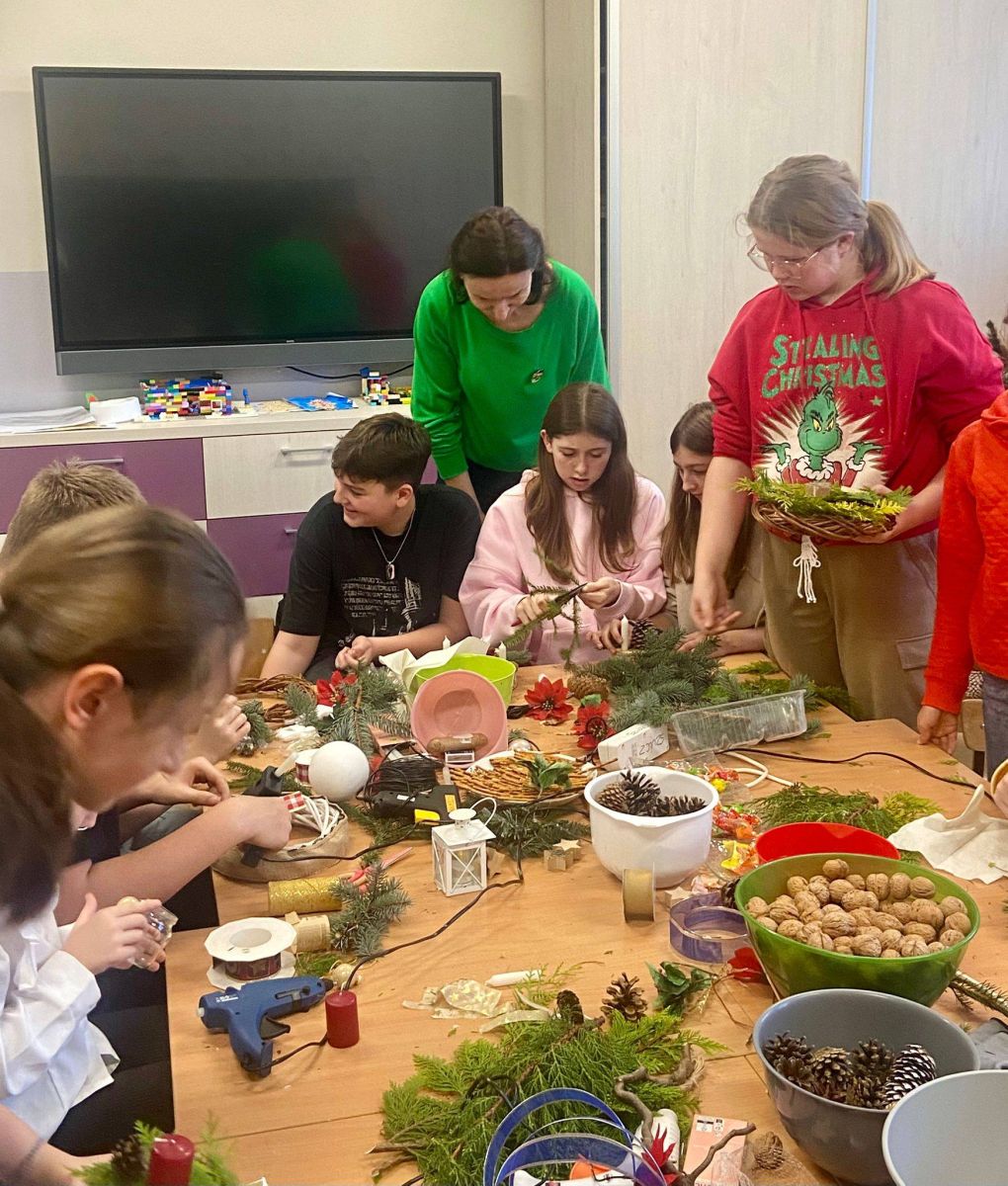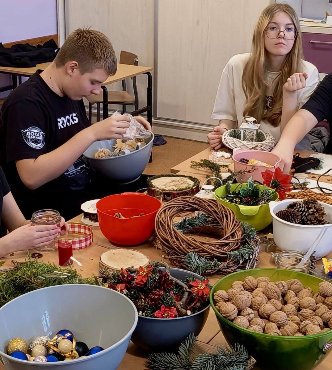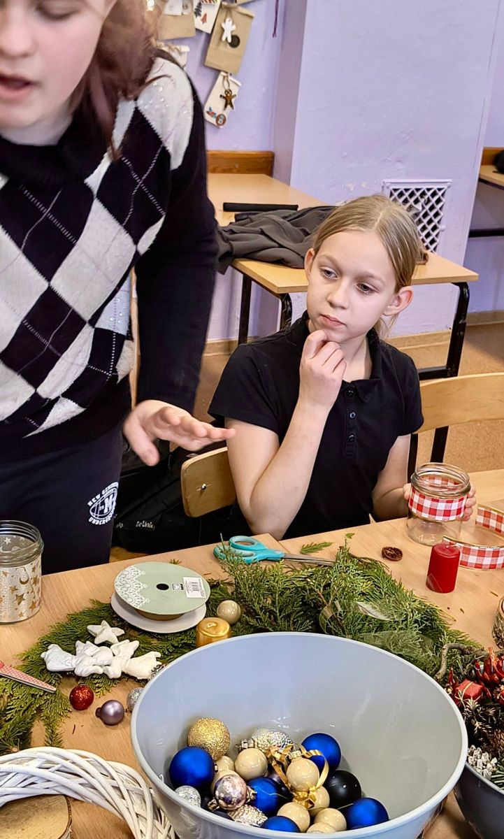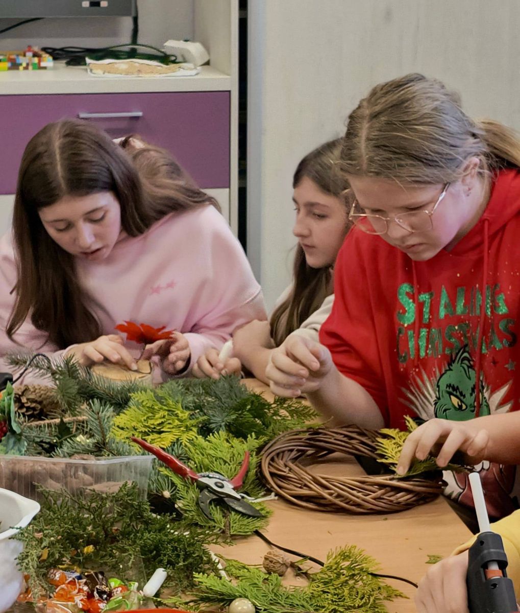 W naszej świetlicy zapanował prawdziwie magiczny, świąteczny klimat! Uczniowie, pełni energii i radosnego zapału, wzięli udział w wyjątkowych warsztatach bożonarodzeniowych zorganizowanych przez Samorząd Uczniowski. Podczas zajęć powstawały niezwykłe, własnoręcznie wykonane ozdoby świąteczne — błyszczące dekoracje i piękne stroiki z pachnących, zielonych gałązek. Zapach świąt unosił się w całej świetlicy! Dzieci wykazały się ogromną kreatywnością, pomysłowością i starannością. Powstały prawdziwe małe dzieła sztuki — każdy stroik i każda ozdoba to efekt ich pracy, serca i wyobraźni. Zobaczcie sami!