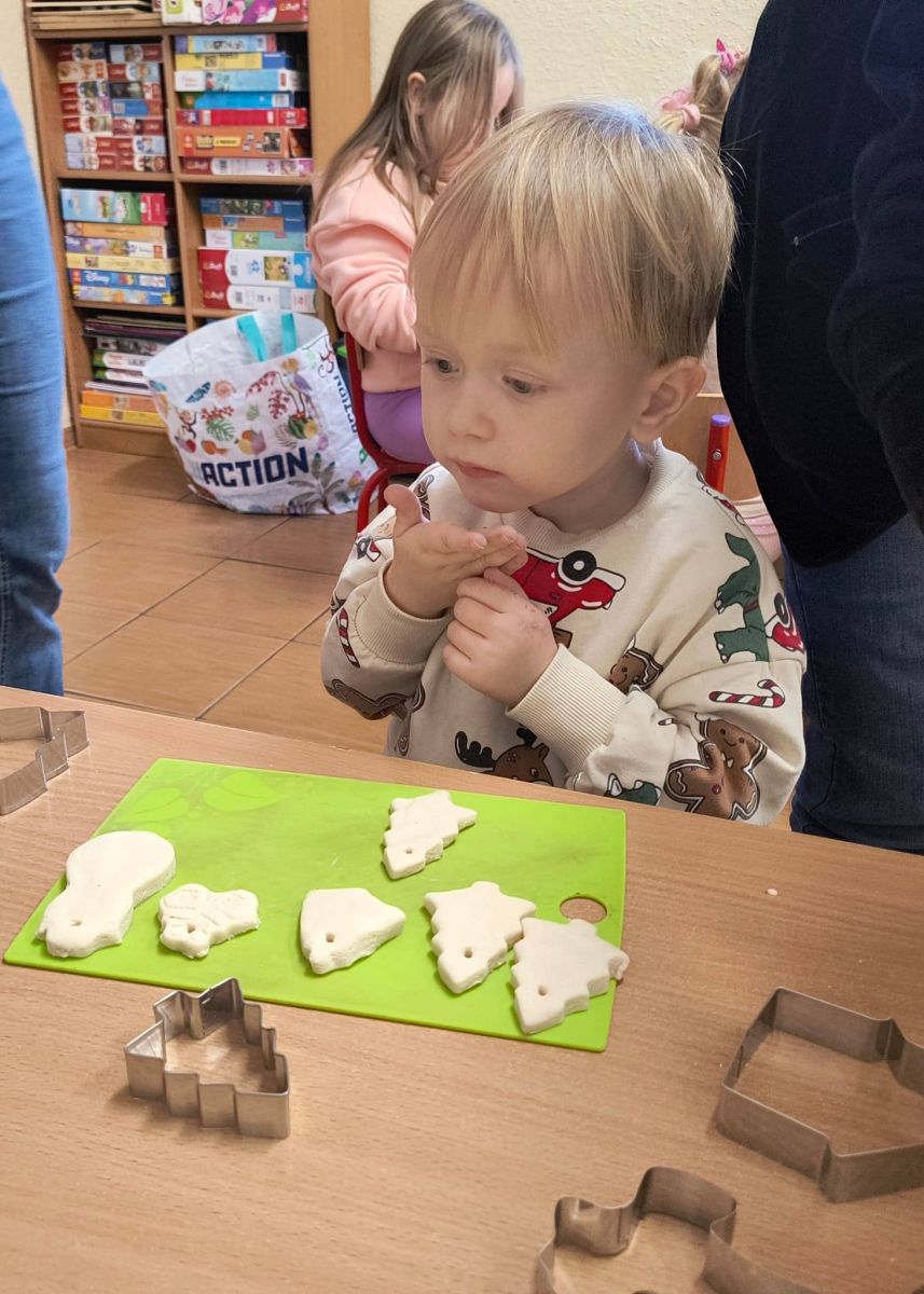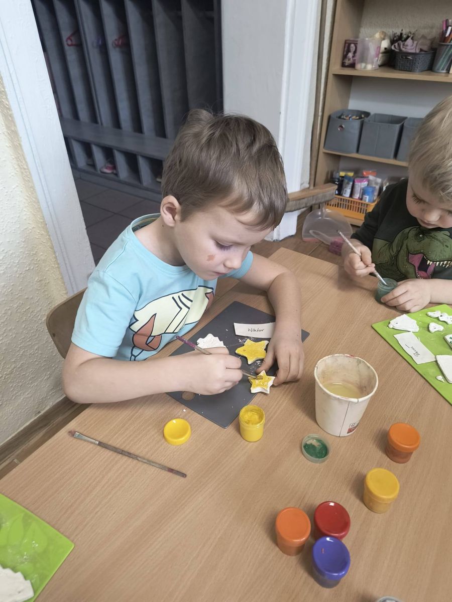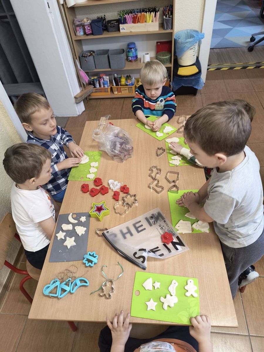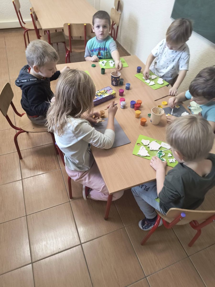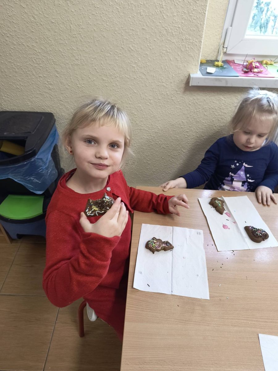 Z początkiem grudnia i Adwentu w naszym oddziale przedszkolnym zrobiło się naprawdę świątecznie! Dzieci z ogromną radością zabrały się za przygotowania — najpierw ulepiły i pomalowały ozdoby z masy solnej, które później zawiesiły na choince. Następnie wspólnie ubierały drzewko, dodając do niego mnóstwo uśmiechu i świątecznej energii. Podczas przygotowań powstał też kolorowy, papierowy łańcuch — tworzony z rozmowami, śmiechem i prawdziwym zaangażowaniem. Nie zabrakło również wyjątkowego gościa — odwiedził nas Święty Mikołaj! Dzieci dzieliły się wrażeniami, zadawały pytania, a radości nie było końca. Gościliśmy także panią Agatę z biblioteki, która przeniosła nas w świąteczny świat dzięki pięknej opowieści przedstawionej w formie teatrzyku kamishibai. To właśnie wtedy odbyła się wspólna dekoracja pierniczków, która sprawiła wszystkim mnóstwo słodkiej radości. Cieszymy się, że możemy wspólnie przeżywać ten piękny, przedświąteczny czas — pełen magii, twórczej zabawy i radosnych chwil.