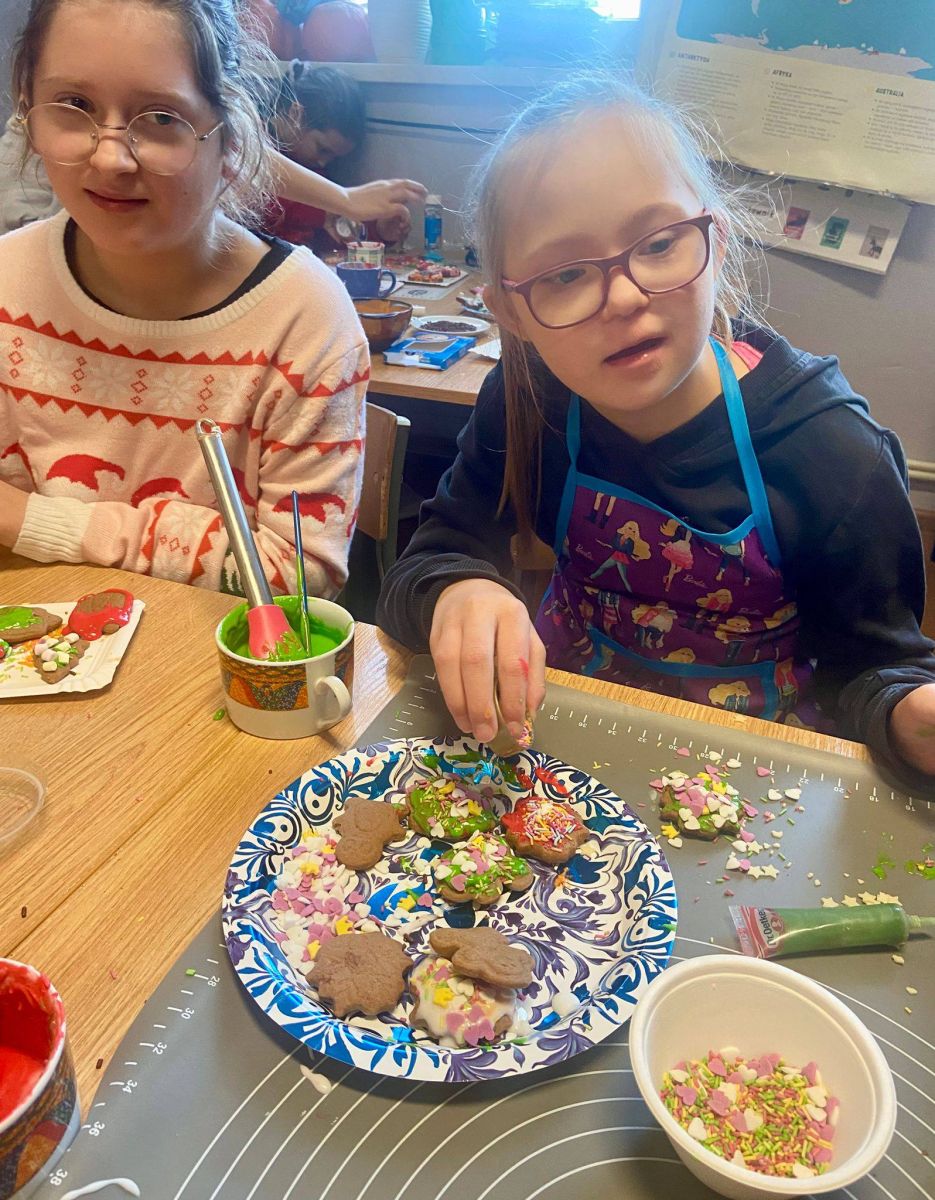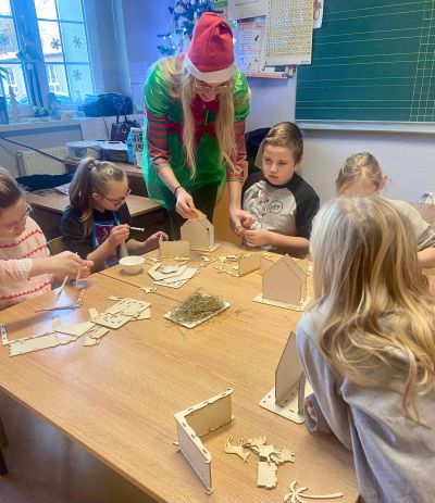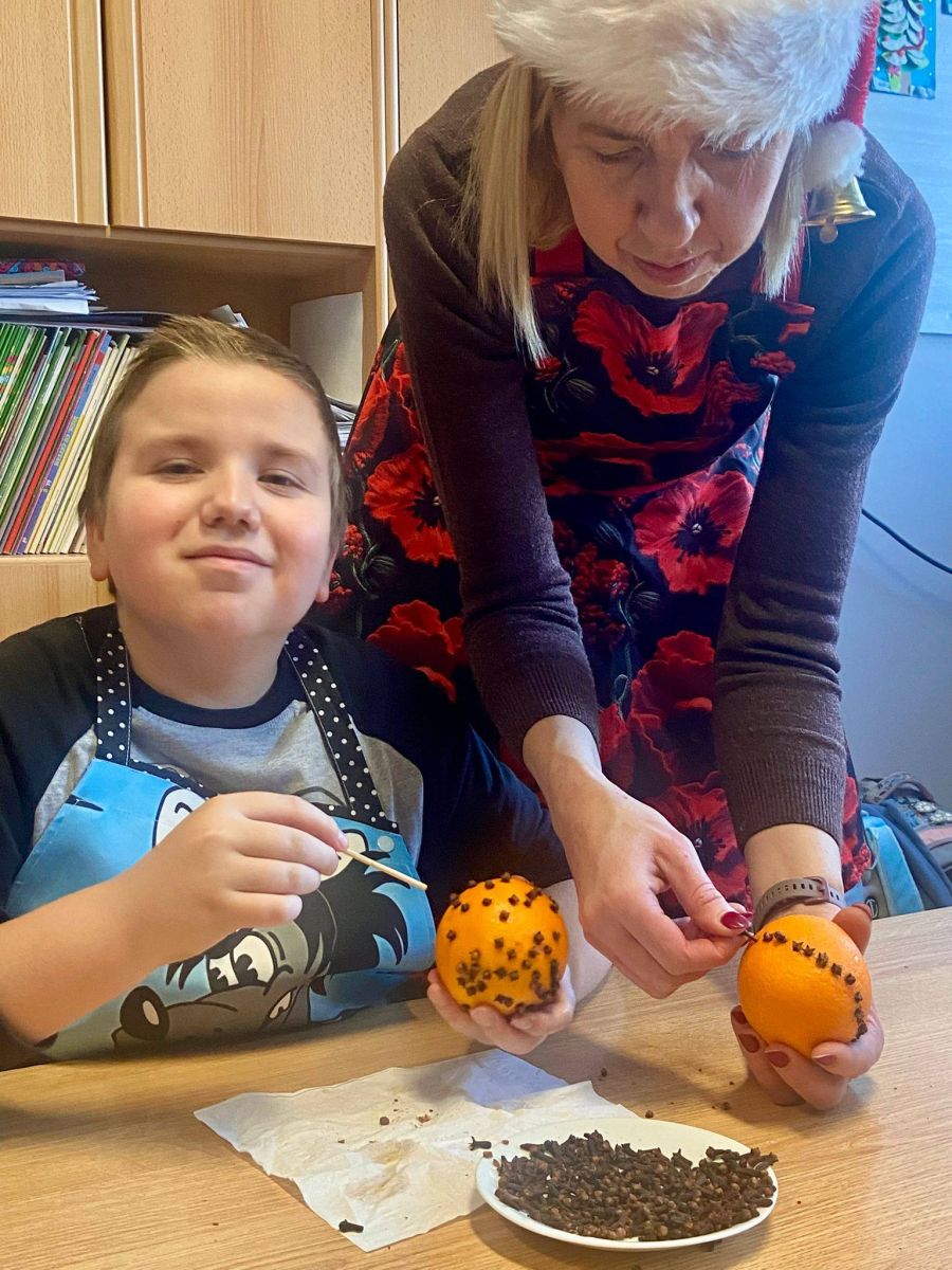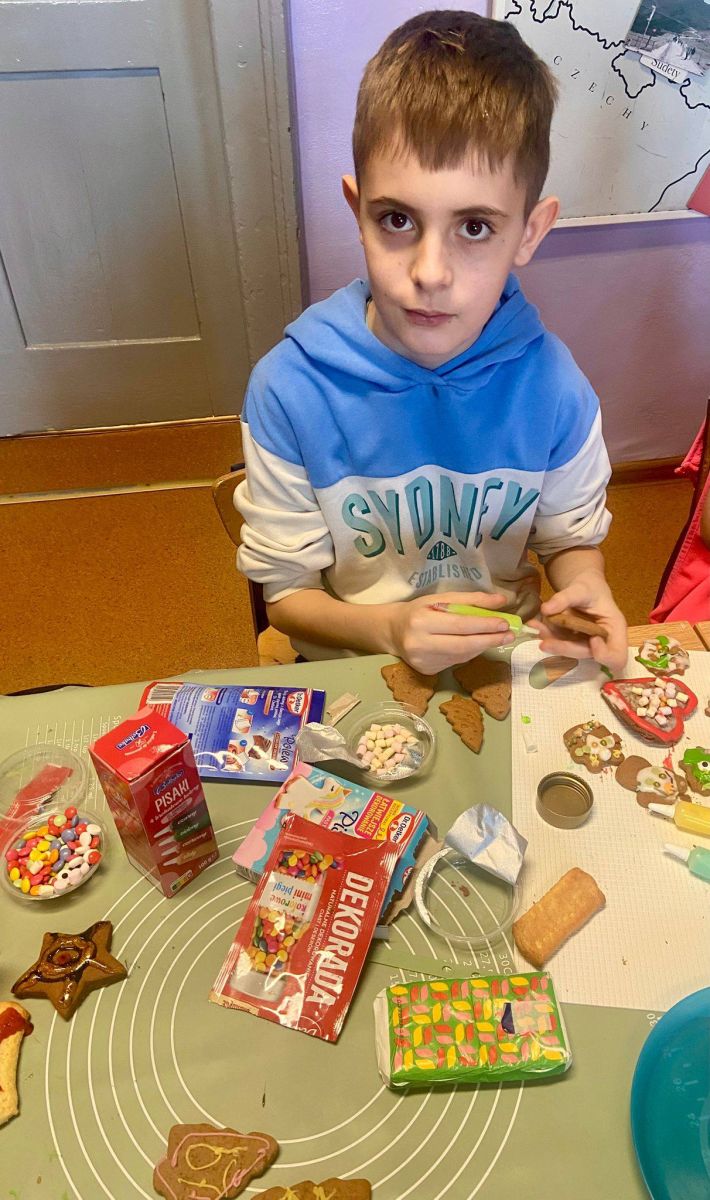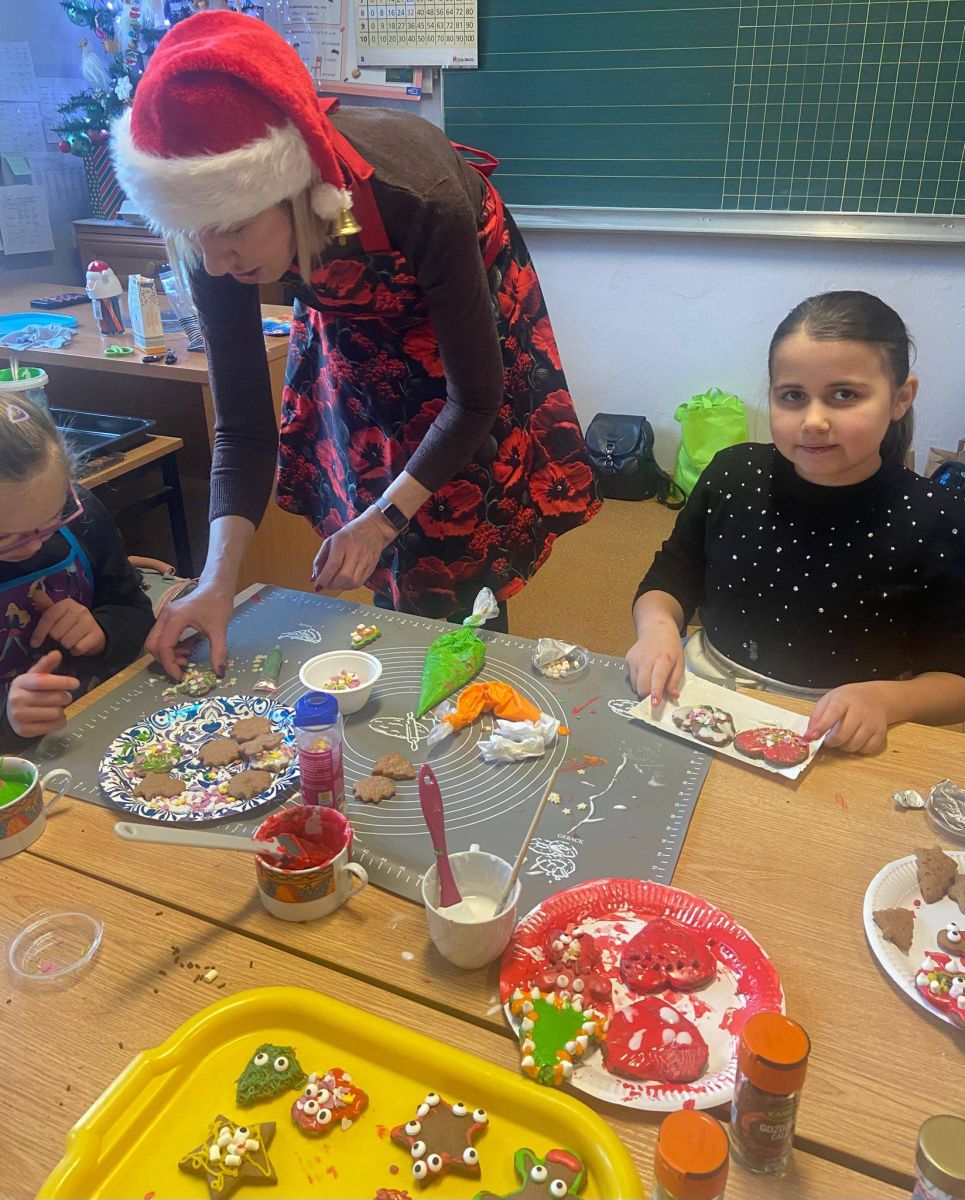 W poniedziałek, 15 grudnia, w Szkole Podstawowej nr 2 od samego rana unosił się wyjątkowy, świąteczny klimat. Już przy wejściu uczniów klas 1–3 witał radosny świąteczny elf, wprowadzając wszystkich w magiczny nastrój Bożego Narodzenia. Tego dnia uczniowie wzięli udział w warsztatach bożonarodzeniowych, podczas których wykonywali szopki bożonarodzeniowe z drewnianych elementów. Zajęcia rozwijały kreatywność, zdolności manualne oraz wyobraźnię dzieci, a efektem wspólnej pracy były piękne i oryginalne świąteczne dekoracje. Uczniowie klasy 3 uczestniczyli także w warsztatach zdobienia pierników i świątecznych ciasteczek. Dzięki zaangażowaniu rodziców oraz wsparciu Pani Anety, szkolna sala zamieniła się w pachnącą piernikową pracownię. Dzieci z ogromnym entuzjazmem ozdabiały pierniki kolorowym lukrem i dekoracjami, tworząc prawdziwe słodkie dzieła sztuki. Dodatkową atrakcją było wykonywanie naturalnych ozdób zapachowych z pomarańczy i goździków, które wypełniły szkołę aromatem świąt i wprowadziły wszystkich w wyjątkowy nastrój. Serdecznie dziękujemy Rodzicom za zaangażowanie i przygotowanie pierników oraz Pani Anecie za poświęcony czas i wsparcie podczas warsztatów świątecznych.