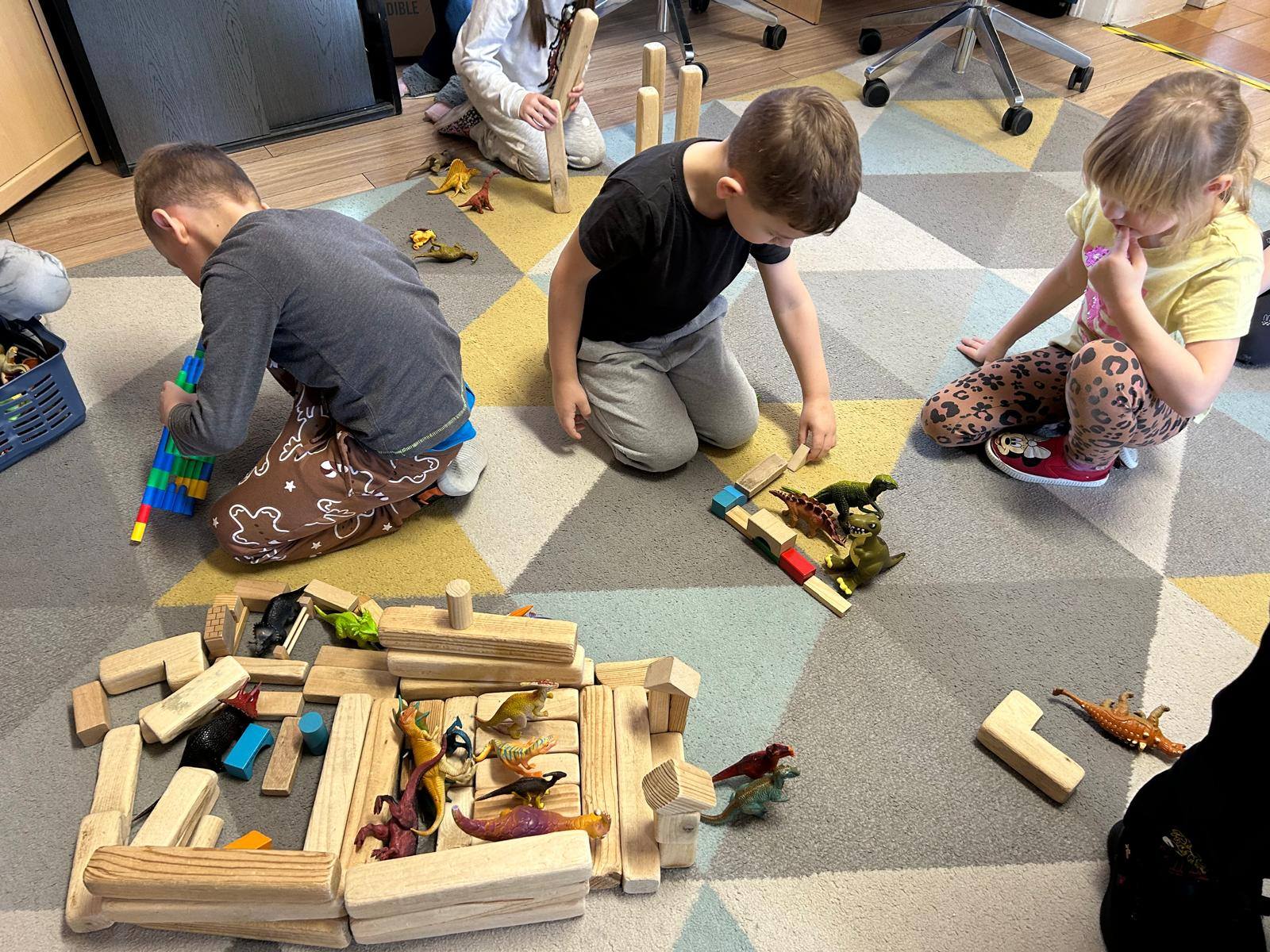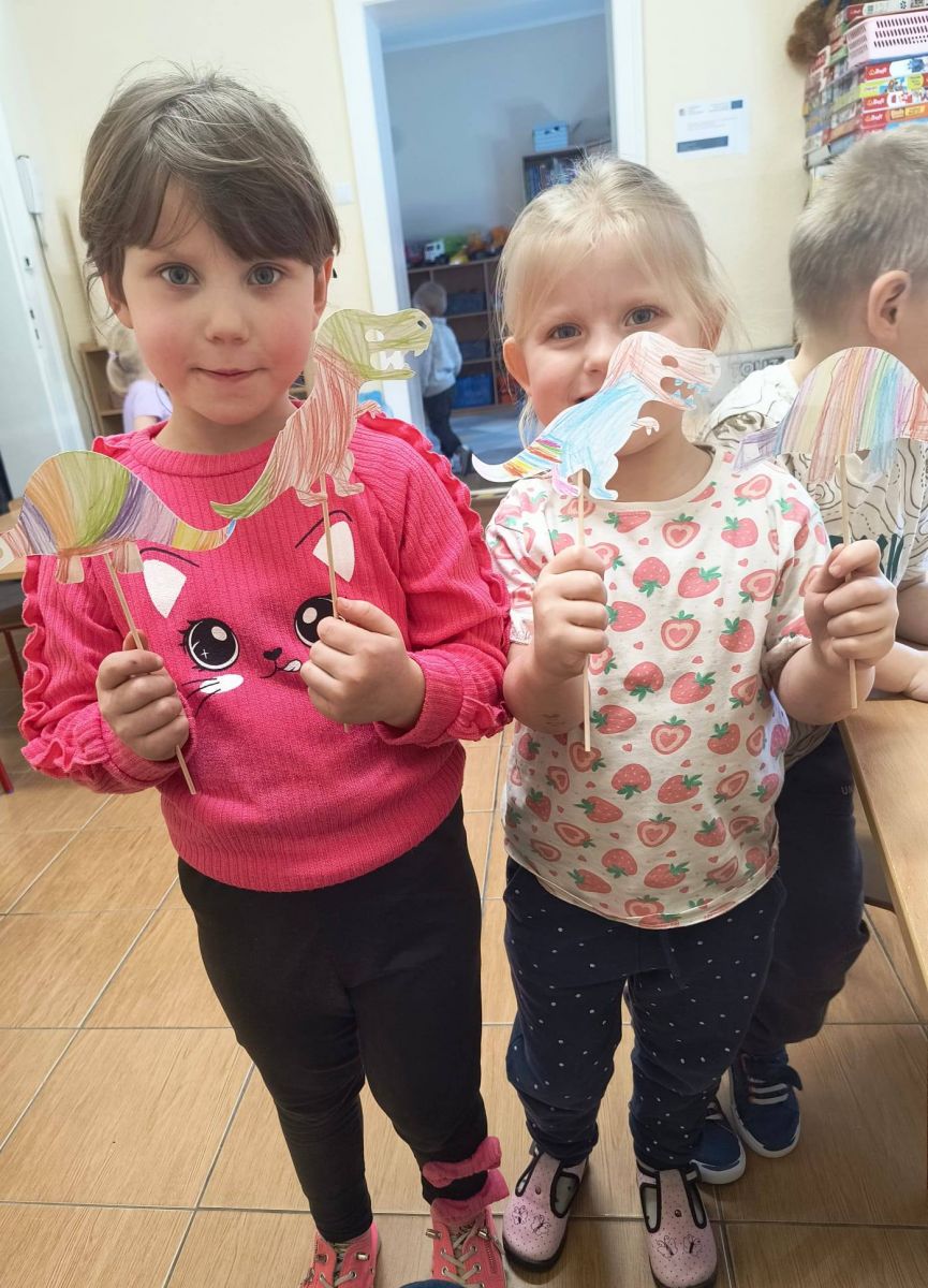 W naszym oddziale przedszkolnym odbył się pełen radości i ciekawych odkryć Dzień Dinozaura. Była to świetna okazja do nauki poprzez zabawę oraz przeniesienia się w odległe, prehistoryczne czasy. Podczas zajęć dzieci poznały wiele ciekawostek o dinozaurach – dowiedziały się, czym się żywiły, jak wyglądały oraz dlaczego wyginęły. Nie zabrakło wspólnego czytania książek , które rozbudziło wyobraźnię i zachęciło do rozmów oraz zadawania pytań. Dużo emocji przyniosła zabawa w memory, polegająca na dopasowaniu jaj do odpowiednich dinozaurów. Przedszkolaki wcieliły się również w rolę badaczy podczas zabawy w wykopaliska, z ogromnym zaangażowaniem odkrywając ukryte „skamieniałości”. Dzieci wykonały także pracę plastyczną – stworzyły własne dinozaury na patyczkach, które stały się postaciami do zabawy w teatrzyk. Kolorowe prace pozwoliły im wcielić się w role i tworzyć krótkie, kreatywne scenki. Na zakończenie każdy przedszkolak otrzymał odznakę Małego Paleontologa, co było miłym podsumowaniem wspólnych aktywności. To był dzień pełen uśmiechu, zabawy i nowych doświadczeń!