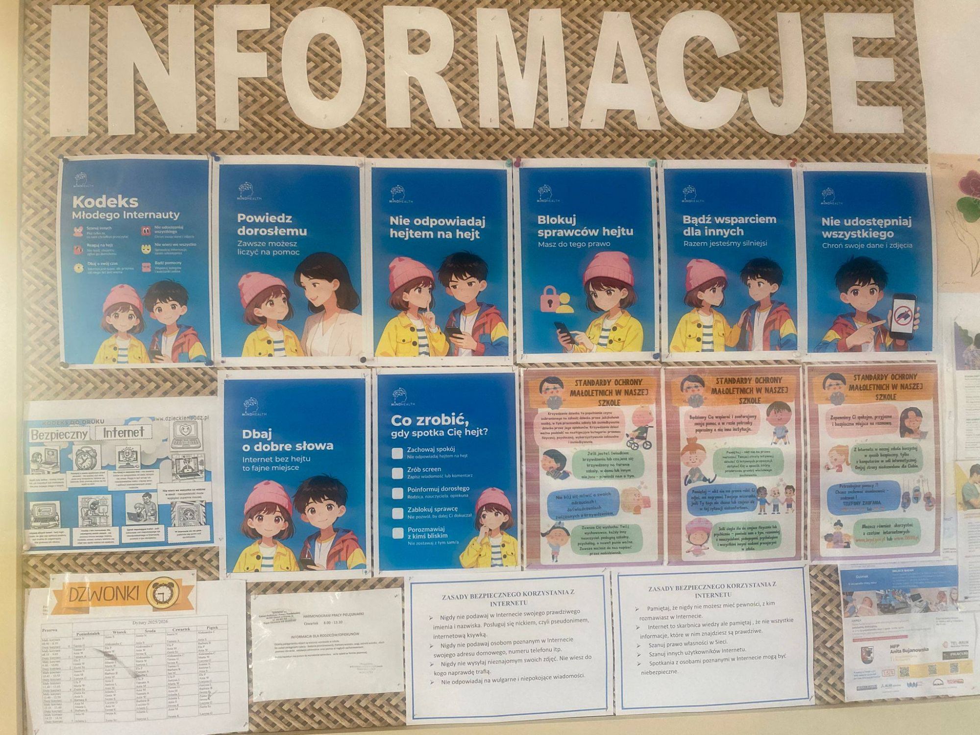 Luty pod znakiem bezpieczeństwa w sieci! W naszej szkole luty stał się miesiącem intensywnej edukacji cyfrowej. Pod hasłem „Bezpieczni w sieci” cała społeczność szkolna zaangażowała się w działania, które pomagają uczniom świadomie i bezpiecznie korzystać z internetu. Program obchodów został dostosowany do wieku i potrzeb uczniów i obejmował pogadanki i warsztaty. Uczniowie młodszych klas uczestniczyli w zajęciach profilaktycznych. Poznali zasady ograniczonego zaufania oraz tworzenia silnych haseł. Starsze klasy analizowały zjawiska takie jak cyberprzemoc, hejt oraz uczyły się, jak chronić swój wizerunek i dbać o ślad cyfrowy. Program „Bezpieczni w sieci” na www.gov.pl. Nasza szkoła aktywnie dołączyła do ogólnopolskiego projektu realizowanego we współpracy z NASK oraz OSE. Uczniowie korzystali z platformy e-learningowej, realizując certyfikowane kursy z zakresu cyberbezpieczeństwa. Tematyka bezpiecznego Internetu ozdobiła także szkolne korytarze, przypominając wszystkim o zasadach „cyberhigieny”. Dlaczego to ważne? Luty to tradycyjnie czas Dnia Bezpiecznego Internetu (DBI). To inicjatywa, która nie tylko ostrzega przed zagrożeniami takimi jak phishing czy dezinformacja, ale przede wszystkim promuje pozytywne i odpowiedzialne korzystanie z sieci.Dzięki udziałowi w programie rządowym oraz lokalnym inicjatywom, SP nr 2 w Ozimku wzmacnia kompetencje cyfrowe swoich wychowanków czyniąc ich bardziej odpornymi na manipulacje i niebezpieczne sytuacje w świecie online.Razem budujemy bezpieczną cyfrową przyszłość!