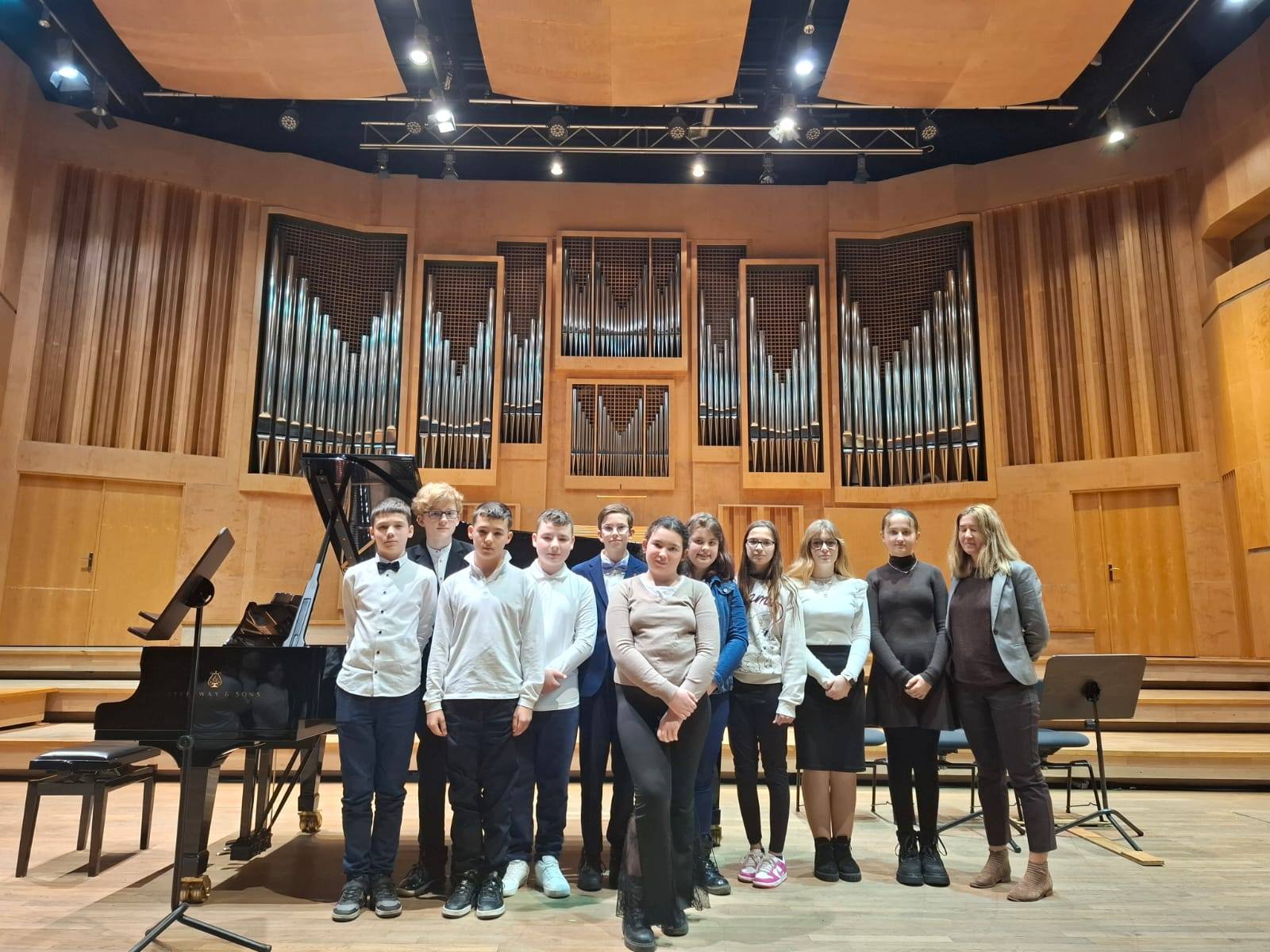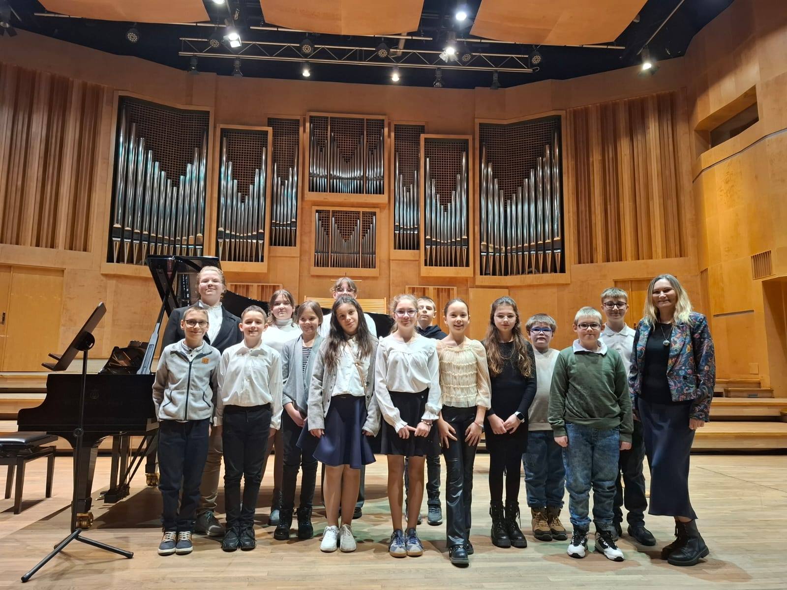 2 marca 2026 r. uczniowie klas V, VI i VIII wzięli udział w wyjątkowym wyjeździe do Filharmonii Opolskiej w ramach projektu edukacyjnego. Podczas mini koncertu „Mozartowski Wiedeń” mieli okazję poszerzyć swoją wiedzę o wybitnym mieszkańcu Opolszczyzny – Józefie Elsnerze, pierwszym nauczycielu Fryderyka Chopina. To była prawdziwa muzyczna lekcja historii! Jednym koncert podobał się bardziej, innym mniej – ale wszyscy wrócili bogatsi o nowe doświadczenia i wiedzę. Po koncercie uczniowie udali się na edukacyjny spacer po Opolu. Przeszli Mostem Groszowym, podziwiali Opolską Wenecję oraz zwiedzili Kaplicę Piastowską w kościele Franciszkanów. Zobaczyli także odnowioną Katedrę Podwyższenia Krzyża Świętego, a wyprawa zakończyła się krótkim spacerem po Opolskim Rynku. Rolę przewodnika pełniła pani Barbara Baron, nauczycielka języka niemieckiego – serdecznie dziękujemy za ciekawe opowieści i zaangażowanie!