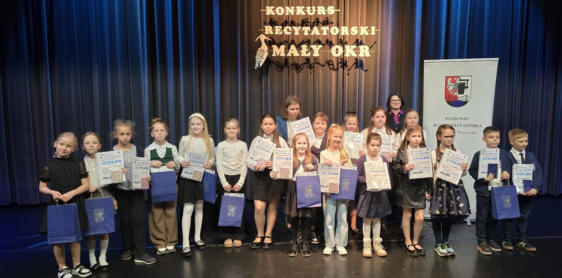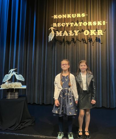 W dniu dzisiejszym w Domu Kultury w Ozimku odbyły się miejsko-gminne eliminacje konkursu recytatorskiego „Mały OKR” dla uczniów klas I–III. Naszą szkołę wspaniale reprezentowały uczennice z klasy II: Natalia Golla i Ariana Ważna. Dziewczyny pięknie zaprezentowały swoje wiersze, wywołując uśmiechy na twarzach słuchaczy. Już jutro na tej samej scenie wystąpią nasze starsze koleżanki i koledzy. Trzymamy za nich mocno kciuki! Jeszcze raz ogromne gratulacje dla Natalki i Arianki za świetną dykcję, doskonałą pamięć, odwagę sceniczną. Brawo dziewczyny! Jesteśmy z Was bardzo dumni!